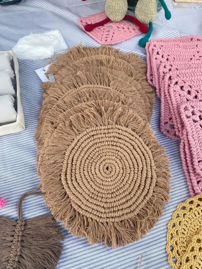 Rankų darbo macrame stalo padėkliukų rinkinys suteiks jūsų stalui išskirtinio stiliaus ir jaukumo. Tvirti, lengvai prižiūrimi ir puikiai tinkantys kasdienai ar ypatingoms progoms.